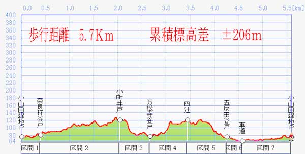 小山田緑地P→奈良杯谷戸→万松寺谷戸→五反田谷戸→小山田緑地P