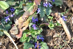 尾根を越えて万松寺谷戸でTさんとお逢いし(昨年も此処の谷戸でお逢いしている)しばし情報交換。万松寺谷戸ではタチツボスミレやキランソウ等が咲いていた。尾根に引き返して尾根筋の路を歩いている所で行き交った方に花の有る所へ案内して頂いたが無くなっていた。