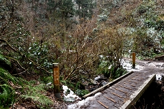 6号路に入って数か所沢に降りてハナネコノメソウの様子を見たが花弁の隙間から赤い葯が見られるが開花は未だ先の様だ。登山道の雪は殆ど消えていたが大山橋辺りはまだ少し残っている。