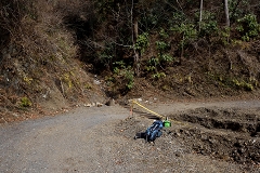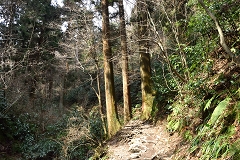 6号路から稲荷山コースに向かうあたりから陽が射すようになってきてスミレの開花を期待しながら稲荷山コースを横切って高尾林道に降る。南斜面の山腹の高尾林道は陽が当たり風もなく暖かいが植林帯の日影に入ると冷え冷えとし春と冬を交互に味わえる。