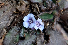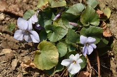 陽当たりの良い斜面でスミレが咲き始めていたが水分不足気味で萎れている花もある。タチツボスミレが主だがエイザンスミレの咲き始めも一株見られる。高尾林道から大平林道に入って学習の道から富士見台で休憩。此処でも人影が無く貸切となる。帰路は高尾山頂には行かず冨士道から霞台に行き2号路から高尾病院に降り出発点の清滝駅に戻る。