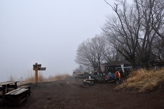 花情報に淡い期待を持って未踏のルートから景信山へ登る。朝から晴れる天気予報だが霧が流れて行き気温も低く吐く息が白く見える。既に駐車場は満車状態だが幸い駐車場は1台分空いていて予定どうりスタートできる。