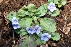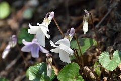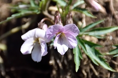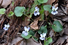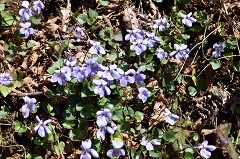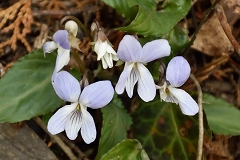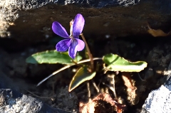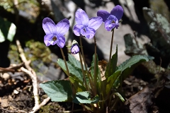 タチツボスミレ、エイザンスミレ、コスミレ、アオイスミレ、ヒナスミレが各所で見られ、他にはオトメスミレの数か所で見られる。昼食ポイントに向かって行く所で既に昼食を済ませて来た花友さん3名と行き交いしばし情報交換。その後軽く昼食を摂ってから日影沢に降り咲き始めたミドリニリンソウを見てから小仏川遊歩道を歩いているところでSAさん達とお逢いして高尾駅まで一緒に帰る。