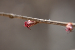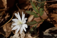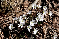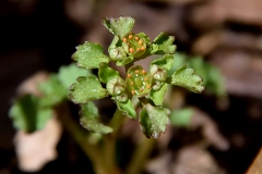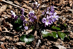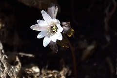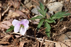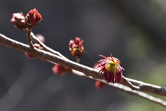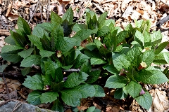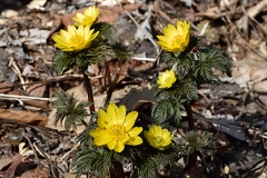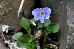 ムシカリ峠まで沢に沿って登るコースで途中に三頭大滝があ有り吊橋が設けられている。石山への分岐を少し入った所でツルネコノメソウが咲き始めている。ムシカリ峠までにも数か所陽当たりの良い所ででイワネコノメソウ見られる他ハシリドコロの新芽が多く出ているがスミレ類は未だ先の様だ。ムシカリ峠で昼食にしてから山頂経由鞘口峠に降り都民の森Pに戻る。