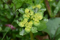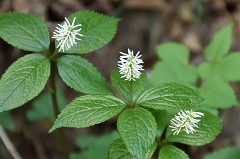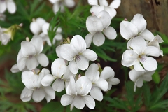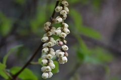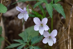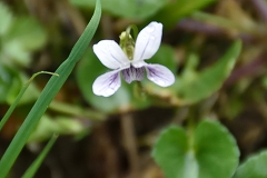 風が強く高い木上の方ではゴウゴウーと唸っているが登山道辺りは意外と静かで花の撮影には影響は無し。往路は南の巻路を行き西山峠で引き返して尾根筋の路を戻る。Pに戻る頃、小雨となって来たが傘を使用しないですむ。予想外に多くん花が見られたがヒナスミレは既に終わっていて見られず。