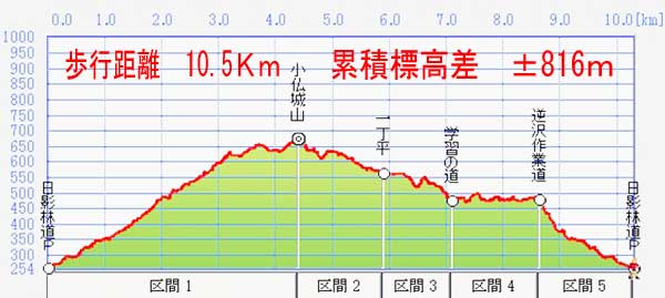 日影沢→小仏城山→一丁平→学習の道→逆沢作業道→日影沢