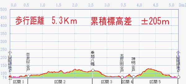 小山田緑地P→奈良杯谷戸→乗越八幡→五反田谷戸→神明谷戸→小山田緑地P