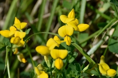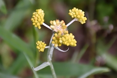枯れ枝もすっかり緑の葉が生い茂り太陽光を遮ってくれて日影の山道は涼風もあり意外と気持ちよく歩ける。花の数が少ないがこの時期にしか見られない花もあ有り短時間だが谷戸山歩きを楽しめる。