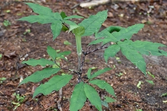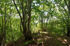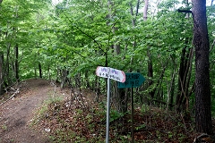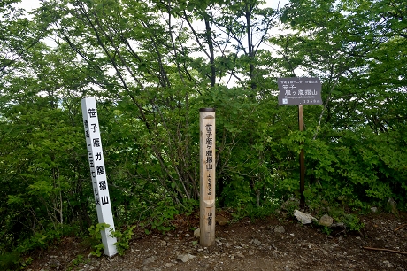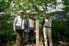 明け方から天気が回復してきて真夏の空となって来たが気温は20度ほどで風が有り新緑のトンネルの状態の登山道は気持ちよく歩ける。往路は尾根筋の路を行き袋は巻路を利用して下山。巻路は送電線の鉄塔もあり巡視道として使われて居る様だ。山頂からは生い茂った木の葉であまり展望は無いが一部南アルプスが望める。秀麗富岳十二景の4番目となっているが富士山は望めず。