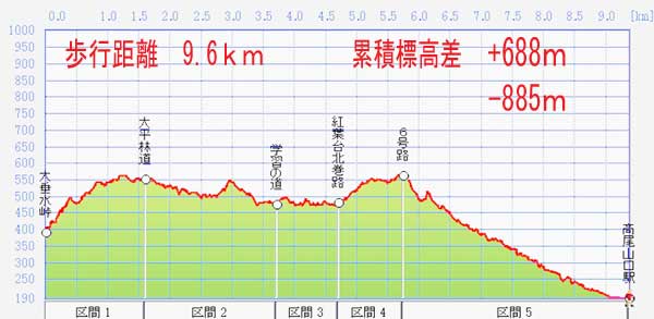 大垂水峠→大平林道→学習の道→紅葉台北巻路→6号路→清滝