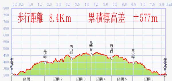 発電所P→三沢峠→南巻路→西山峠→見晴台→三沢峠→発電所P