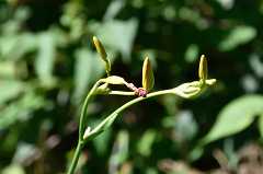 昨日に続き本日も猛暑で山歩きは止めようと思ったが気を奮起し南高尾へ向かう。飲料水5本用意して発電所の所から山道に入って行くと緑の木陰は微風が有り気持ちよいが汗がにじみ出てくる。早朝散歩の方と数名行き交ったが人影は無し。榎窪山を越えて三沢峠で休憩している所へ高Mさんが来て同行する。(今日は一人だが昨日は大勢で来たとの事)