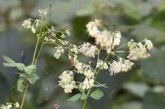 少々道なき斜面を歩いたりして花探し、見晴台まで行き小休止後Kベンチまで戻り軽く昼食ご再び花を見ながら三沢峠戻る。吹き抜ける風が気持ちよく休憩している所へ高Oさん達が来て何時もの様にテーブル会談となり疲れも汗も消えてしまう。