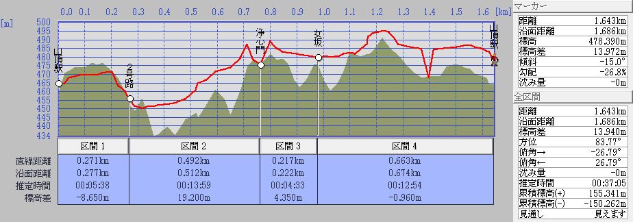 祈祷所駐車場→清滝駅⇒山頂駅→2号路→浄心門→女坂→山頂駅⇒清滝駅