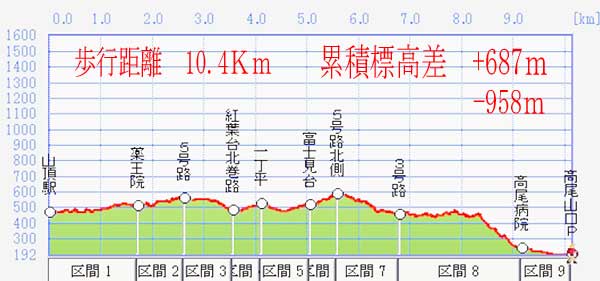 高尾山頂駅→薬王院→紅葉台北巻路→一丁平→紅葉台南巻路→3号路→高尾病院→高尾山口P