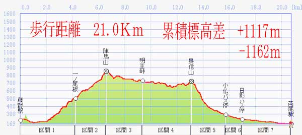 藤野駅→一ノ尾根→陣馬山→景信山→ヤゴ沢→小仏→旧甲州街道→高尾駅