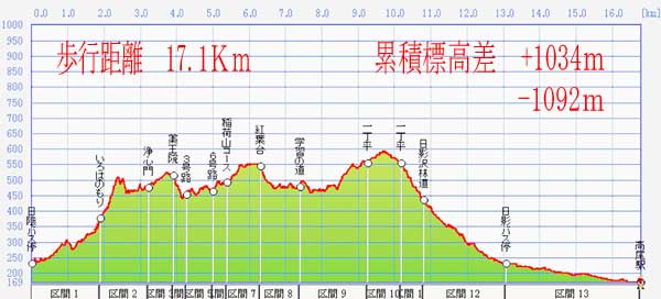 日影バス停→いろはのもり→浄心門→薬王院→3号路→6号路→紅葉台→大平林道→一丁平→日影沢林道→高尾駅P