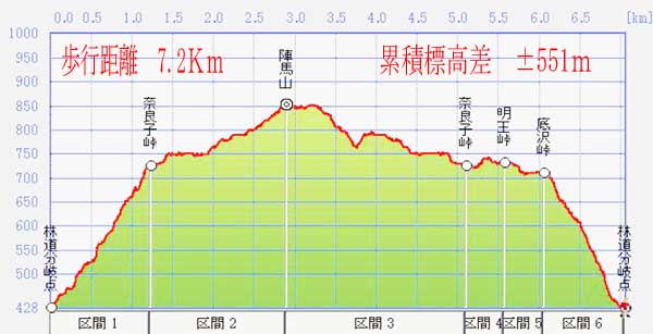 林道P→セツ久保→奈良子峠→陣馬山→奈良子峠→明王峠→底沢峠→林道P