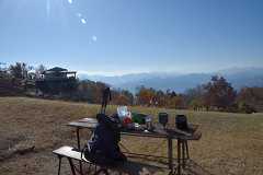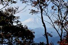 11時35分丁度登り始めてから1時間、奈良子峠に出る。10分ほど休憩後、陣馬山に向かう平日の影響か行き交う人が殆ど無く黄葉した樹林の合間からの展望を楽しみながらユルユル歩きで陣馬山迄行き此処で富士山を見ながら用意してきた昼食を味わう。
