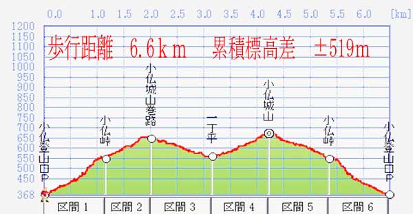 小仏峠登山口P→小仏峠→小仏城山巻路→一丁平→小仏城山→巻路→小仏峠→小仏峠登山口P