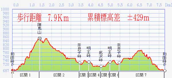 和田峠P→陣馬山→奈良子峠→明王峠→底沢峠