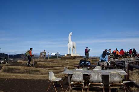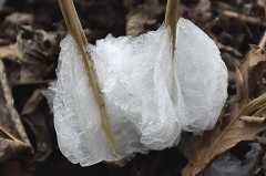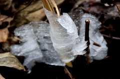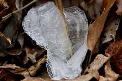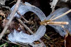 今日も気温が上って来て霜の華は見られるか半分諦めていたが少し解け始めていたが結構大きな霜の華も見られる。富士山の展望を期待して陣馬山山頂に登って見ると少し雲が架かっている。何時もは賑わう山頂だが年末の影響か10名ほどで少ない。