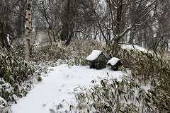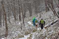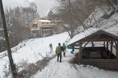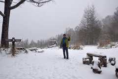 此の所晴天が続き天候も安定しているので展望の良い軽く歩ける夜叉神峠に行くお誘いが有り。参加者の都合の良い20日を選んだが結果は峠で雪雲と待合せの雪山になってしまう。里では時折り小雪が舞う程度だがやはり標高の高い所では雪で帰りには15センチ程積もってしまう。