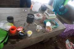 登山口まで降り屋根のある休憩舎で用意して来た食料を出してお湯を沸かして暖かい物を作る。今日は特に暖かい物が美味しく感じる。帰りはAさんのご厚意で台が原に有る酒造へ行き試飲(七賢)お土産に購入。筋向いの金精堂にもより生信玄餅もお土産に購入。登山+αの実行に感謝。