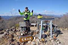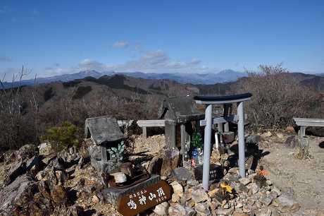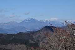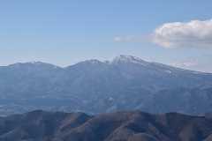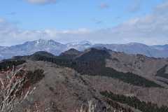昼食休憩後はすぐ上の山頂へ向かう。鳴神山は小さな双耳峰で桐生岳と仁田岳の名称が有り鞍部(コル)から岩場をよじ登ると桐生岳山頂で展望が開ける。遠くは霞んで富士山は見えないが浅間山、赤城山、袈裟丸山、日光男体山が近くに見える。
