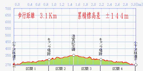山下⇒小仏川⇒小下沢林道P→キャンプj場跡→浩宮記念碑→キャンプj場跡→小下沢林道P
