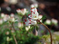 小下沢林道を歩き始めると戻ってくるE本さんと行き交い花情報を頂く。再び林道を歩いて行くとS開さん行き交い見て来た花を案内して頂くことになる。当初はザリクボの滝まで行く予定が小下沢の上流へ行き各所で咲くハナネコノメソウなど見てくる。半日の短い時間だが多くの花を見ることが出来る。