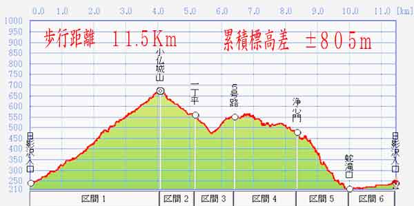 日影沢P→小仏城山→一丁平→5号路→冨士道→浄心門→蛇滝→日影沢P