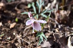 前回2月4日で約2か月前に来た時は気温が20度近くまで上がり暑かったが今日は気温が15度ほどで風が冷たい。日影沢林道も緑が濃くなりニリンソウの白い花が両脇に続く。林道上部の日当たりの良い斜面ではスミレ類も咲き始めている。