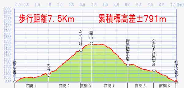 都民の森P→大滝→ムシカリ峠→三頭山→野鳥観察小屋→かおりの路→森林館→都民の森P