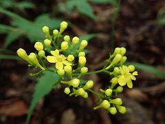目的のヤワタソウは既に終わっていたがギンバイソウが各所で見頃と珍しいミヤマツチトリモチを見られる。平日と天気の影響か行き交う人は数名で山頂でも3名で下山時は全く行き交う人は無し。登山口に戻ると帰りのバスを待っている登山者が15名ほどいる。森林館で情報を頂いたのでまた次回の楽しみも出来る。