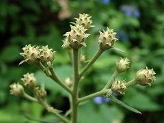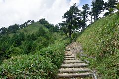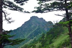 本日の宿泊予定の宿舎から登山開始、梅雨明けの青空で雲が多いが雨の心配はなさそうだ。緑の濃い山腹を緩やかに続く登山道の周辺には関東では見られない珍しい花も多く見れれる。成就社コースと合流して二の鎖、三の鎖を迂回して山頂(弥山)1974mに出る。この先に石鎚山最高峰の天狗岳1982mが有るが体力と時間の問題もあり眺めるだけにして往路を戻る事にする。