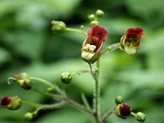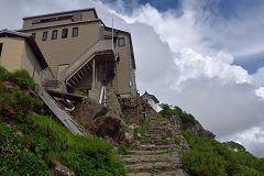 天候にも恵まれて迫力ある天狗岳の鋭峰を十二分に見る事が出来る。帰り道も再び周辺に咲く花を見ながらゆっくりと降る。遠くで雷音が聞こえてきたが幸いにも石鎚山には近づいてこなかった。初めての四国の山歩き半日だが十分花も見られて満足感に浸れる。(国民宿舎石鎚泊)