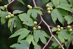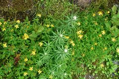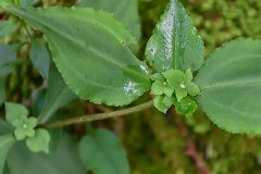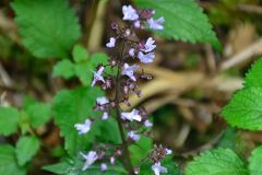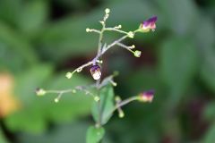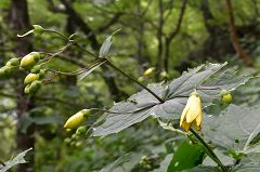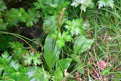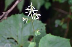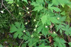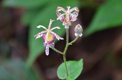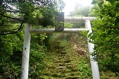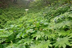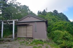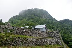 岩の切通しを抜けると大きく開けてきてお城の石垣と思う所に出る。(手箱越)此処も修行場の様で大きな建物もあり。前方の鳥居は手箱山へ、後方の鳥居は筒上山へ続く登山道で手箱山に向かう。時間等の関係で途中で引き返す。往路では気付かず通過してしまったキレンゲショウマの群生を確認、此処も未だ時期が早かったが一つ開花した花が有り。帰り道で数人行交ったが石鎚山と比べると登山者が少ない静かな山歩きが出来る。
