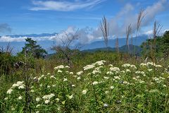 大蔵高丸で展望を楽しんだ後はお花畑の続く山道をハマイバ丸先の草原まで行き引き返す。此の時期は花の最盛期は過ぎているが秋の花も咲き始めていて多くの種類の花を見る事が出来る。(約50種類)各所で10名ほど行き交ったが平日なので静かにゆっくり花観察が出来る。