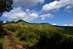 目前の富士山を眺めながら爽やかな草原(ススキ)の中の道筋を辿る。夏に比べると花数は少ないがこの時期にしか見られない花や夏と秋の間に咲き終わった花もある。また以前見られなかった新たな花も見る事が出来て毎回楽しみが増す事になる。