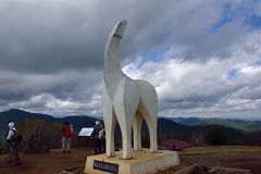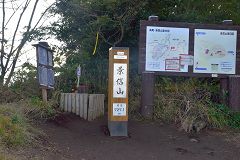 長い一の尾根の登りでは後から登って来るグループ、単独、ファミリー等に追い越されて行くがマイペースでゆっくり登る。コウヤボウキ、ヤクシソウ、ノギク類が各所で見られる。一ノ尾根中間地点に有る手作りベンチで休憩。紅葉は遅い様でやや黄色くなっている感じの尾根筋を登り最後の急斜面をジグザグに登り木段を登り詰めて陣馬山山頂に出る。