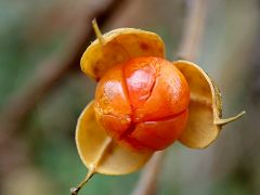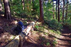 陣馬山山頂は昼食時で多くの登山者が来ている。何時も寄る信玄茶屋は閉店で山頂付近を一巡りしてセンブリ、ツルウメモドキを見てくる。清水茶屋によって昼食、富士山の見えないテラスで一人で乾杯、12:30高尾に向かう明王峠を通過して底沢峠を過ぎて伐採されて明るい尾根筋を通過して堂所山の巻路を過ぎて何時もの巻路に有る倒木ベンチで休憩。今日は何時もより行き交う人が少なくトレランの人と数名行き交う。