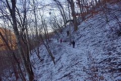 再び雪道を登山口に降る |