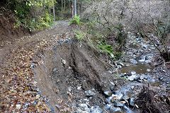 キャンプ場までは林道の修復が済み車は入れるようになっていたがその先は各所で崩落等が有り完全復旧は何時になるのか?。