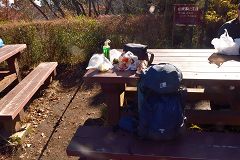 小仏城山で昼食後一丁平、富士見台と紅葉台で今年最期の紅葉を見てから未確認の逆沢作業道をを下り日影沢林道に戻る。逆沢作業道も1ッカ所崩落が有り注意が必要だが通行出来るが通行止めになっているので注意が必要だ。各所での通行止め早く復旧される事を願う。行き交った登山者の情報として6号路は通行可能との事。
