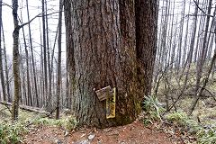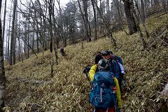 前回は道路も積雪でスリップに注意して登ったが今日は全く雪の欠片も無し快適に走れて夜叉神の森登山口に到着。道路際の駐車場には既に10台ほどの車が来ている。登山口からカラマツ林の中、足元は背の低い笹が茂る斜面をジグザグに登って行く前回は雪で足元の植物などは全く見られなかったが今日はスミレ類の葉を確認できる。