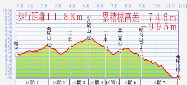 霞台→薬王院→高尾山→一丁平台→小仏城山→一丁平→富士見台→稲荷山コース→高尾山口