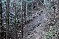 当初遅い出足で高尾山で引き返す予定でいたが天気も良くなって来た事で紅葉台で昼食と思っていったがベンチは何処も満員で一丁平を目指したが、途中で通行止めの学習の路の様子を見てから鉄塔下で遅い昼食にする。(2カ所崩落が有るが踏み跡が有り何とか通過できる。)
