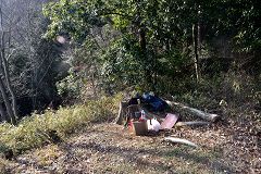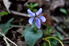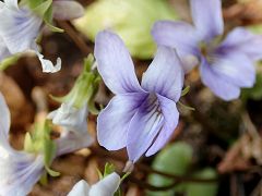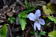 帰りは引き返す事も出来るがスミレの花を期待して大平林道から高尾林道へ向かう。今日も暖かく南の斜面の日当たりの良い所では期待どうり数か所でスミレの花が咲いていた。此処で花の写真を撮りに来たSさんとEさんつ行き交う。