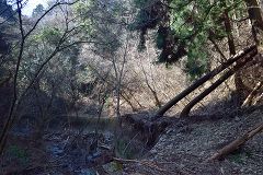 キャンプ場跡に戻り此処で今回も昼食、北高尾から廻って狐塚峠から降って来た方としばし談話。昼食後は小下沢の上流方面に足を延ばし数か所でハナネコノメソウが残っている所を確認してくる。昨年の台風の後見に来た時は変わり果てた様相でハナネコノメは全滅と思っていたが僅かだが各所で花も見られて一安心。